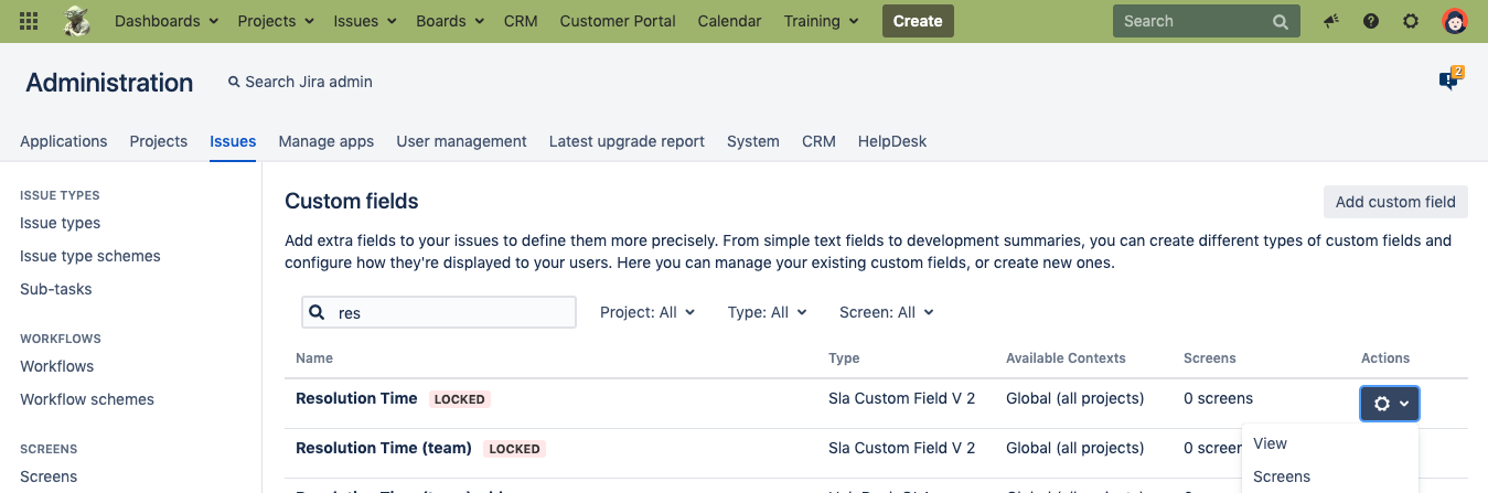 3. A new custom field appears in the list of custom fields when you create a team SLA. Add the field on the required view screens.