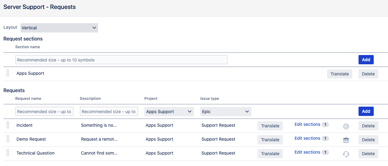 Add requests specifying the target project and issue type. If required, change the list of fields available upon creating an issue via HelpDesk.