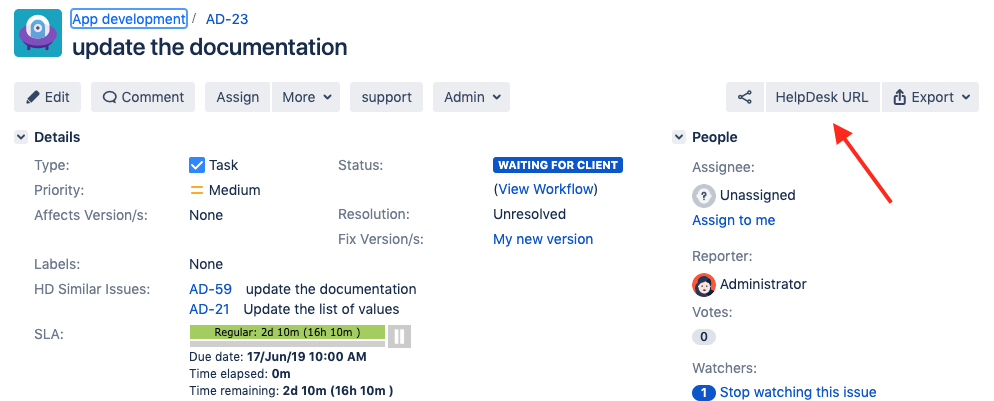 open the link by the helpdesk-user: the issue might be inaccessible for the user.
