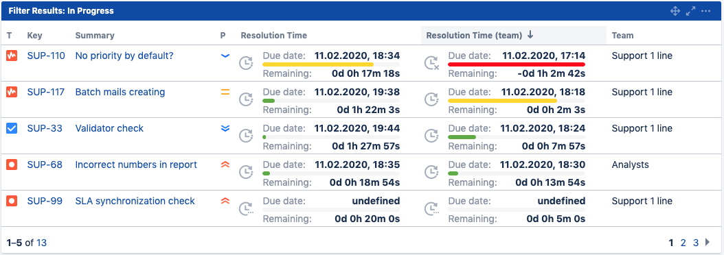Specify the SLA rules to control the time limits of the particular actions with issues. Define which issue parameters the SLA depends on – the SLA due date will change automatically if they are changed. If you have several teams working on one issue and want to control them separately, use the advanced SLA configuration (OLA).