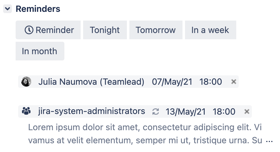 Cosmetic UI improvements in Reminders section in issue.