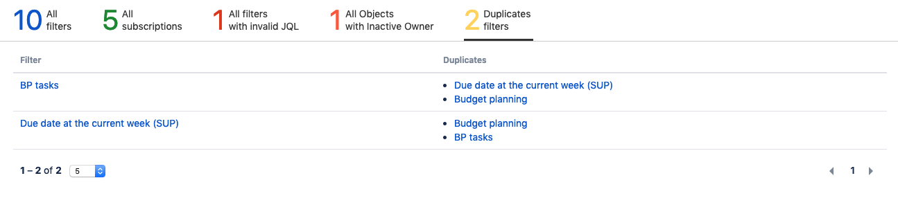 Note that the duplicative filters search schedule should be set up by Jira Administrator at first.