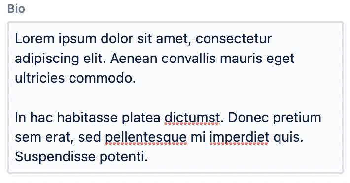 Description: A text field is an input that allows a user to write or edit text. Multi-line, unlimited characters.