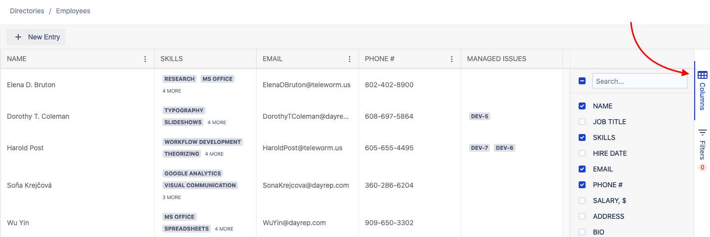 You can set up which attributes should be displayed within a grid as columns. Click on Columns to open the panel.