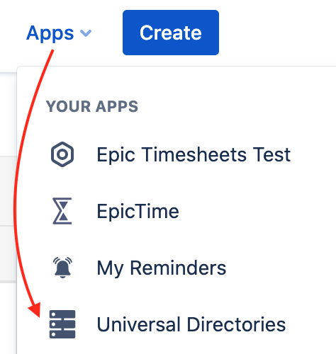 If you have relevant permission, you can see the link to the Universal Directories app in the Apps section on the upper panel of Jira.