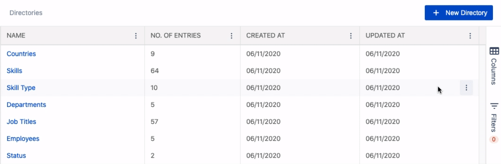Universal Directories consists of directories. Each directory is basically a list of cards/objects created by the same template. As an admin, you can create directories and set templates for them adding different parameters and defining the order of display. Universal Directories users will fill the directories with entries.
