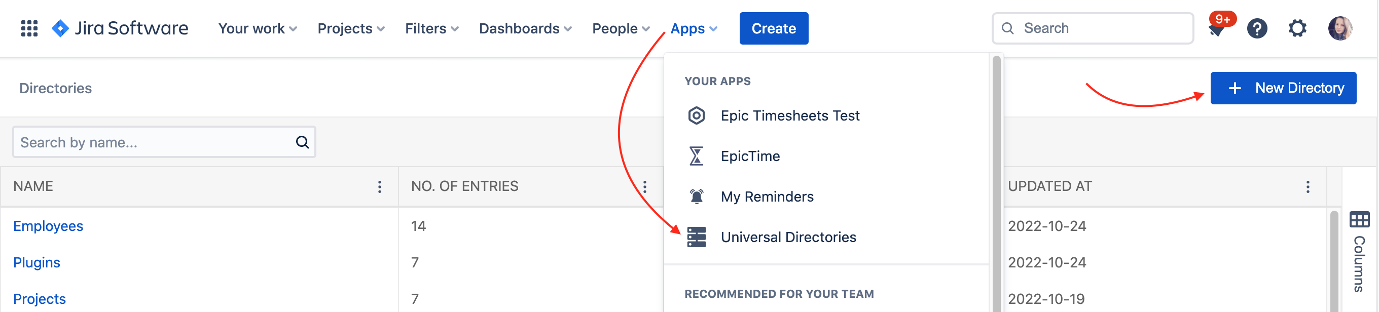 To add a new directory navigate to Apps → Universal Directories → Directories and select + New Directory.