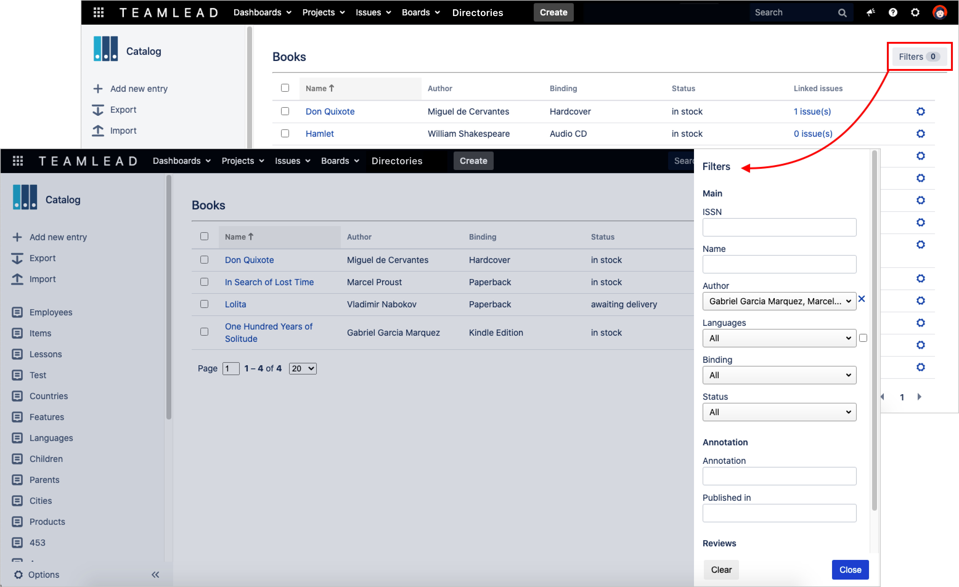Each directory provides filtering. A user can filter the list of entries by several attributes.