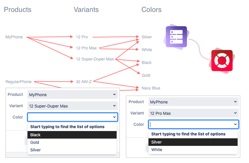 Create a list of products and allow customers to select them in requests. Use the cascading selection to keep information consistent.