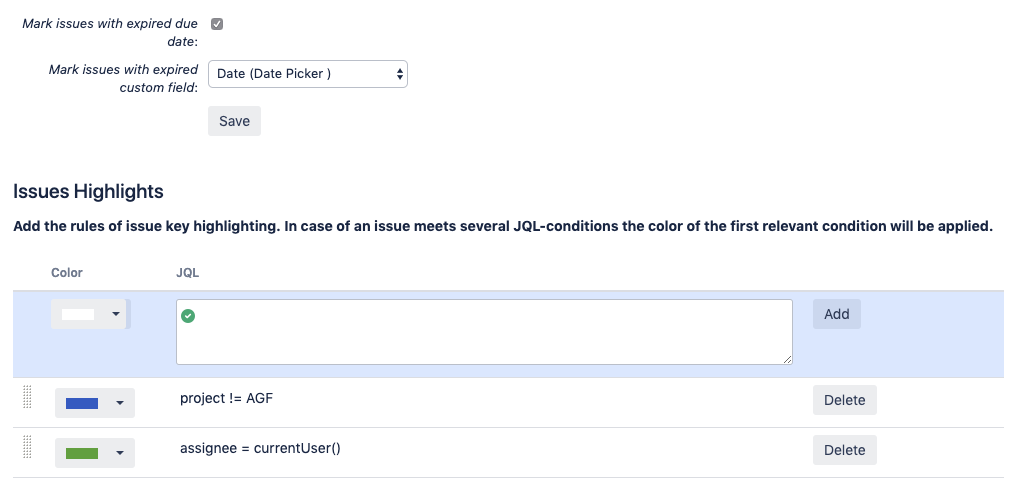 Mark issues with the expired custom field - allows you to select custom field of Date/ Date-time Picker type to be considered as pivotal.